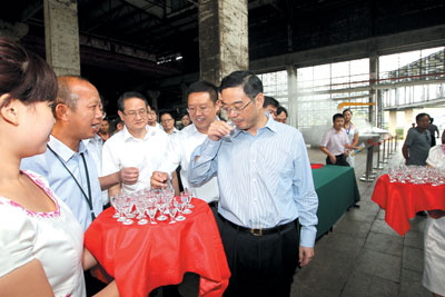周强品尝湘窖美酒。