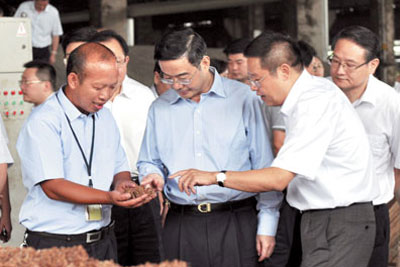 周强在吴向东的陪同下,先后深入酿酒车间、麻坛酒库、年份酒库、酿酒生态园二期、包装车间参观。所到之处,详细询问公司的产品创新、产品营销和市场拓展情况。