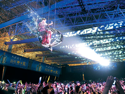 演唱《人间》时,现场歌迷大声合唱,却把王菲带入“歧途”,抢了一拍,发现自己“抢跑”后,一向以冷艳示人的王菲偷偷做了个鬼脸,轻笑几声,孩子气的动作引来台下数千歌迷的掌声与笑声,不少歌迷大呼“王菲,我爱你!”这个小插曲使得王菲的心情愈加轻快,在之后的演唱中,时有笑意。有歌迷议论说,“王菲肯定是被开口笑酒感染了,居然在台上表演起了‘开口笑’。”