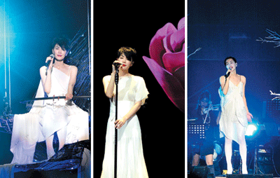 一曲《雪中莲》,王菲出场。演唱会分为春、夏、秋、冬、重生五个主题,除了首唱的新歌外,《传奇》、《我愿意》、《天空》、《人间》、《将爱》、《但愿人长久》等经典毫无例外地一次次引来全场合唱。而王菲依旧寡言少语,除了不时到舞台两侧跟歌迷挥挥手之外,从头到尾就说了十个字,都是“谢谢”。