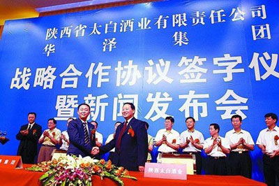 8月6日,在历经了近半年的磋商后,集团与陕西省太白酒业有限责任公司在西安签订了战略合作协议。集团出资9498.60万元,占太白酒业51%的股权,成为陕西太白酒业的控股股东。陕西省人大常委会副主任赵德全和省政协副主席周卫健等政府领导,集团董事长吴向东、总裁颜涛、副总裁李践楚、副总裁路通,太白酒业董事长张吉焕、副董事长兼总经理张智斌、常务副总胡建祥等出席了签字仪式。