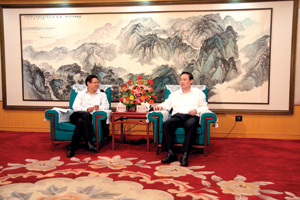 (吴向东与南昌市委书记余欣荣座谈)