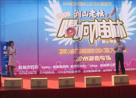 由桂林市政府举办,桂林市旅游局、桂林市电视台承办,桂林湘山酒业全程赞助的“桂林国际山水文化旅游节”之“湘山酒”唱响桂林K歌大奖赛,在桂林市及所辖12个县经过近一个月的初赛,10月31日海选后共有12名参赛选手进入复赛。在海选现场,湘山酒业对“湘山老坛”系列、新上市的30度湘山酒进行了现场品评,让观众在观看海选的同时,对湘山品牌产品有了进一步了解。