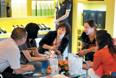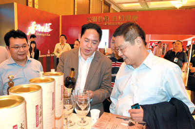 吴向东董事长视察展厅时品尝香格里拉红酒