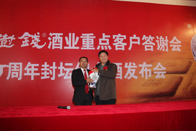 12月9日,榆树钱酒业在其新厂区举行了“重点客户答谢会暨200周年封坛纪念酒发布会”。著名白酒专家高月明,吉林省博物院院长赵瑞军,中国酒业协会副会长栗永清,吉林省酿酒协会会长杨润东,榆树市市委常委、常务副市长高中会,榆树钱酒业董事长汤向阳、酒业总经理徐加龙、销售公司总经理陈炜以及榆树钱酒业重点客户等共计400到会庆贺。