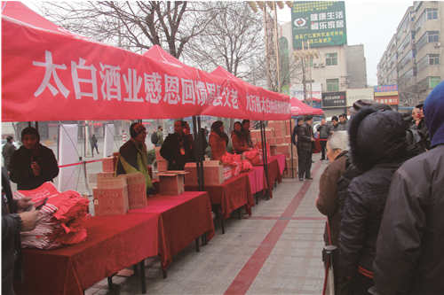 本报讯12月27日、28日,太白酒业在陕西省眉县举办活动,向当地父老乡亲赠送美酒。该县9万个家庭都将获得太白酒业馈赠的太白内招酒。