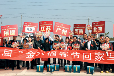 1月20日至28日, 15627人通过“金六福春节回家互助联盟”这一平台实现“春节回家”。