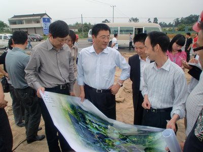 6月10日,成都市委副书记、市长葛红林在邛崃市委书记郑和平、市长刘兴军和副市长王琰的陪同下莅临金六福生态酿酒工业园,察看工程建设情况。