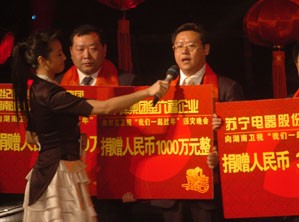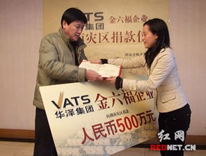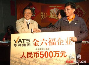 当寒冷和灾难同时降临的时候,大雪无情人有情,中华大地无数双援助之手伸向广大雪灾灾区。2月5日,华泽集团继前一日向湖南省赈灾募捐办捐赠500万元现金后,集团董事长吴向东在接受湖南卫视“爱心大融冰”募捐晚会专题采访时,再度捐款500万元,用于受灾群众的基本生活安排和安置灾后生产,至此,集团累计捐款千万,为此次雪灾的广大受灾群众献上来自民营企业的双份爱心。
